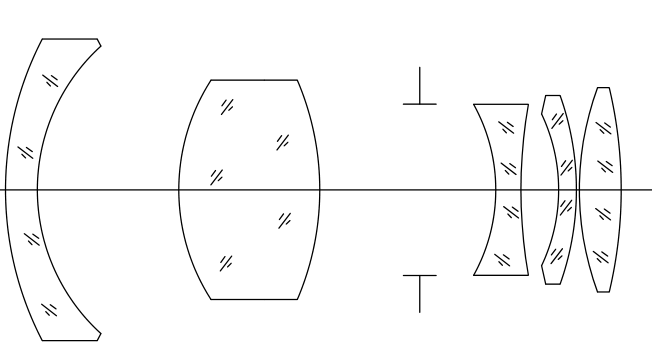 医用硬性内窥镜物镜具有焦距短、视场大、光学长度长的特点,因此一般选用反远距物镜结构进行光学系统设计。负光焦度透镜组作为前组,正光焦度透镜作为后组,当平行光束入射时,经前组发散后,被后组成像在焦面上。这种光学系统的主面向后移除物镜之外,因此获得比焦距长的工作距离,而且视场角很大的轴外光束经负光焦度透镜组发散后,进入正光焦度透镜组的发散角变小,从而达到广角的目的。