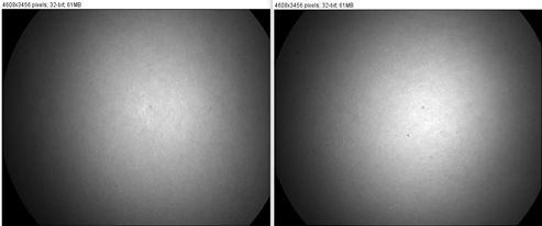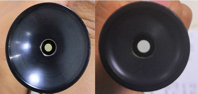 上图是两款10mm腹腔镜的出瞳。我们很明显能发现侧的4K内窥镜的出瞳直径要明显比左侧4K内窥镜的出瞳直径大。从成像效果来看就是在同样的光照条件下,右侧内窥镜的画面亮度会由于左侧的4K内窥镜。但是从景深上来说,右侧的4K内窥镜要劣于左侧4K内窥镜。同时,较大的入瞳也会使得CMOS上照度分布的不均匀,即视场边缘照度比视场中央的照度要弱许多。
